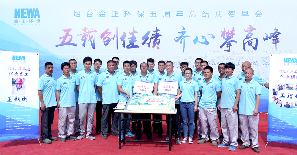2017年7月5日,是金正環(huán)保五周歲的生日,金正環(huán)保全體員工舉辦了簡單而隆重的五周年總結(jié)慶賀早會。
