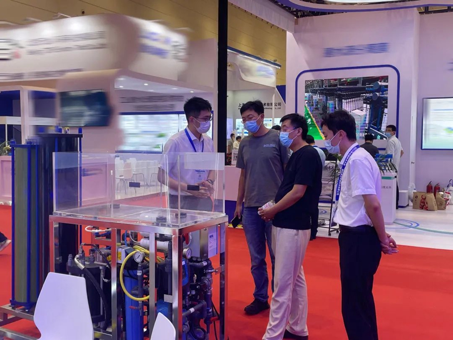 本次展會展出的專利膜組件-100barDTRO膜組件、CDRO膜組件、小型海水淡化設備等水處理設備受到與會人員的高度關注,在場的工作人員與來訪客戶在產品技術亮點、解決方案成本優勢、合作意向等諸多方面一一進行了深入的溝通和交流。